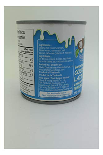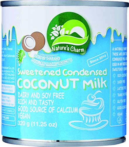 - Nature’s Charm leche de coco, condensada y azúcarada en lata de 320 g / 250 ml