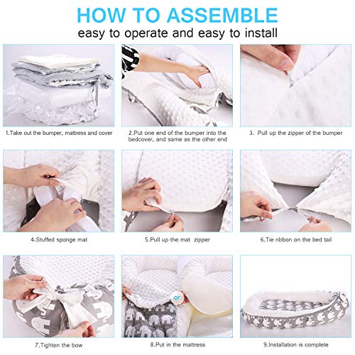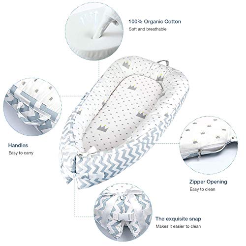 - ?【Portatil y lavable a maquina】 - Con un asa cosida para facilitar su transporte. Se puede colocar en las camas, el piso de la sala de estar, el sofá o la cuna. Es fácil llevarlo a donde quiera ir y siéntase libre de hacer que el bebé se sienta cómodo. Es fácil de lavar y admite lavar a máquina, las fundas de la cuna, la almohadilla es desmontable, diseñada con cremallera oculta.