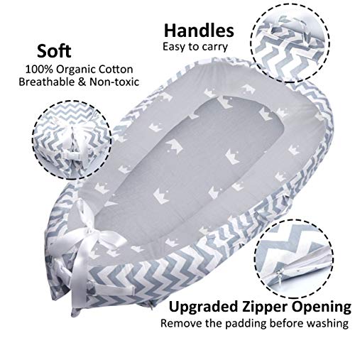 - ?【100% algodón y antialérgico】 - Luchild nido bebe hecho de 100% algodón, permeabilidad al aire, hipoalergénico, no tóxico con cómodo cojín de poliéster con funda de algodón supersuave. Seguro para pieles sensibles al bebé. No cambiará sus propiedades después de lavados repetidos.