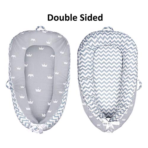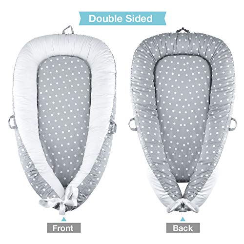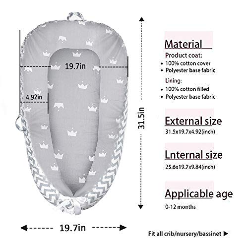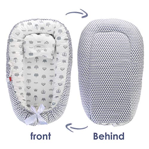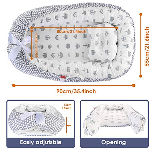 - Lujoso nido seguro para bebés: una comodidad superior para el cuerpo, la cabeza y el cuello de su recién nacido con bordes estables y protectores (tamaño externo: 52x87 cm e interno: 24x63 cm)
