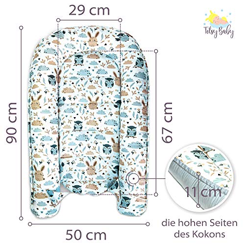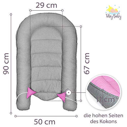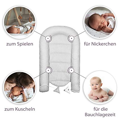 - CREE UN AMBIENTE ACOGEDOR - baby cocoon es óptimamente grande, envolverá a su hijo y lo hará sentir seguro. Cocoon se puede ajustar al ancho mediante un cordón de algodón. 70 cm de largo: puede relajarse y ganar más espacio, hasta 90 cm.