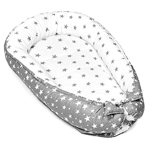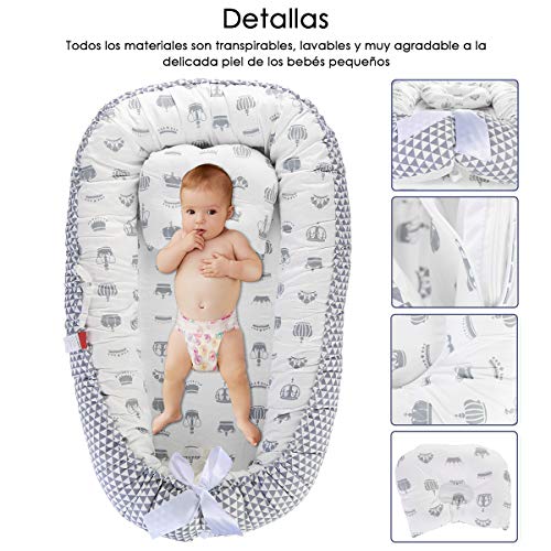 Babify Cuna Nido de Bebé, Algodón 100% Antialergenico - Color Blanco y Gris