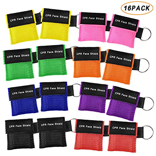 Shayson Paquete de 16 Mascarilla rcp, CPR Máscara de Bolsillo máscara de Emergencia con Kit de Emergencia con válvula de una vía para Rescate de Primeros Auxilios o Entrenamiento con AED