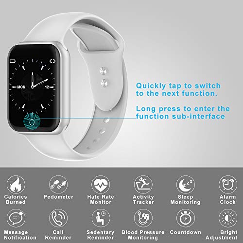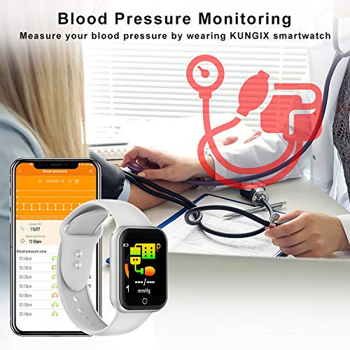 Smartwatch, KUNGIX Reloj Inteligente Impermeable IP68 Pulsera de Actividad Inteligente con Monitor de Sueño Pulsómetros Podómetro Contador de Caloría, para Hombre Mujer niños (Blanco)