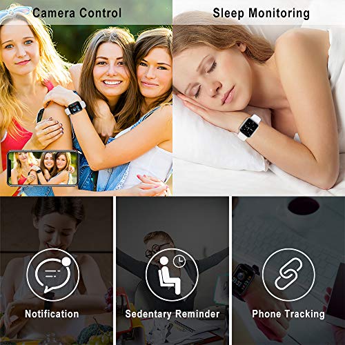 - 【Reloj multifuncional del rastreador de ejercicios】El Pulsera Actividad Inteligente no solo es hermoso sino también multifuncional. Además de la presión arterial, la frecuencia cardíaca y el control del sueño, se proporciona un conteo de pasos, un recordatorio sedentario, un recordatorio de mensajes, fotografías remotas, calorías, alarma, cronómetro, buscador de teléfono, temporizador de cuenta regresiva, etc. Se puede configurar una cantidad de datos en "H Band".