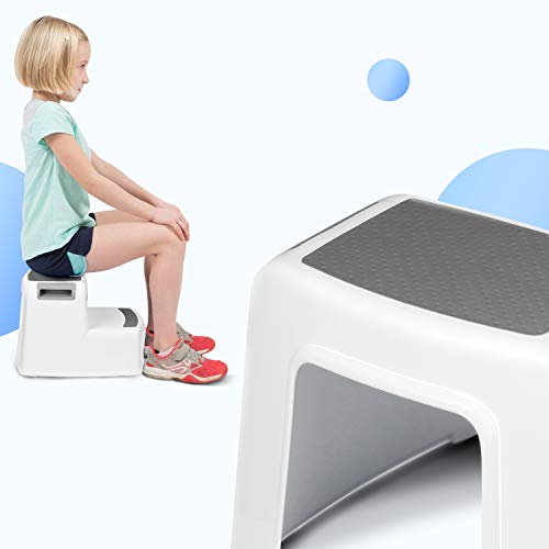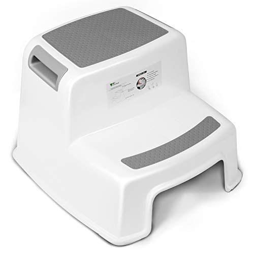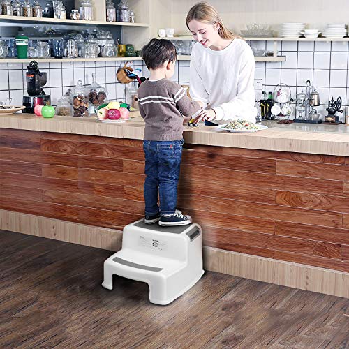 Amzdeal Taburete con doble escalón para niños, Taburetes en dos etapas para niños con revestimiento antideslizante, usar en la cama y baño, Blanco y Gris