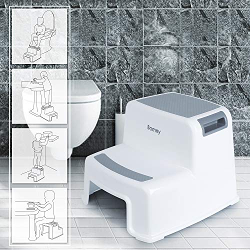 Bamny Escalón Infantil, Taburete de Dos Escalones para Bebes, Taburete Baño Niños con Revestimiento Antideslizante