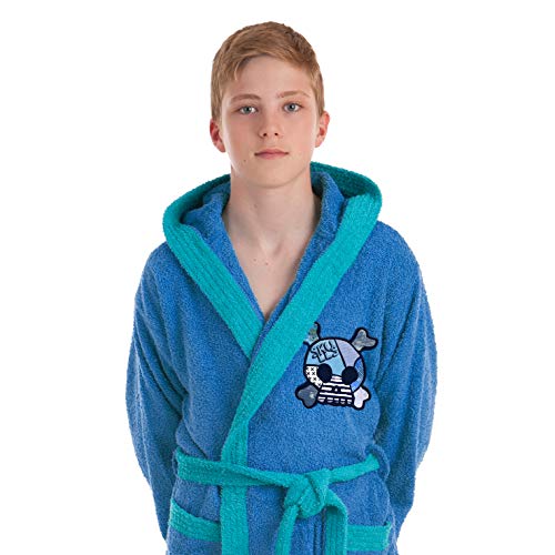 Stilia, Albornoz Ducha, Bata de Baño Bordado, Algodón 100%, Skulls Calavera (Niño años/Boy 14 Years Old), Multicolor