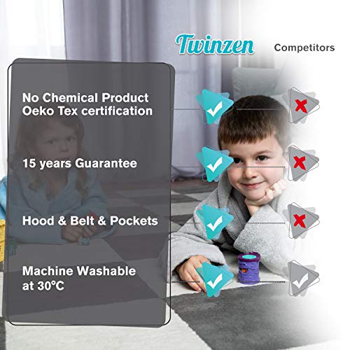 Twinzen - Albornoz Niños Algodón - Niño y Niña - 100% Algodón Oeko-Tex® - Bata de Baño 2 Bolsillos, Cinturón y Capucha