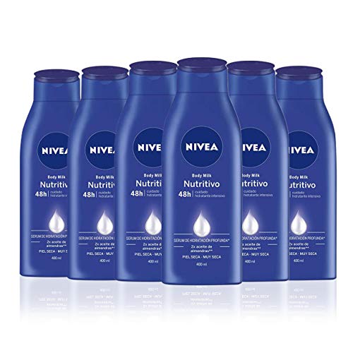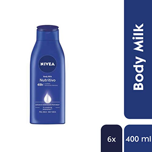 NIVEA Body Milk Nutritivo en pack de 6 (6 x 400 ml), leche corporal para una hidratación profunda durante 48 h, crema hidratante corporal con aceite de almendras