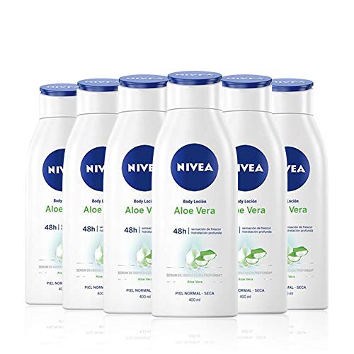 NIVEA Body Loción Aloe Vera en pack de 6 (6 x 400 ml), loción corporal refrescante para 48 horas de hidratación profunda, loción hidratante con aloe vera y sérum