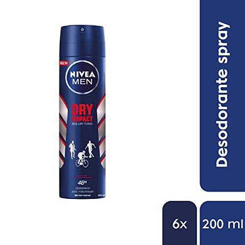 - Contenido del envío: NIVEA MEN Dry Impact Spray, desodorante para hombre testado en la vida real, pack de 6, 6 x 200 ml, spray
