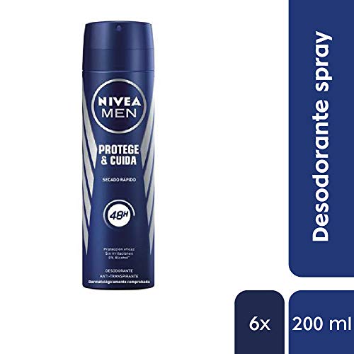 - Contenido del envío: NIVEA MEN Protege & Cuida Spray, desodorante antitranspirante para hombre, pack de 6, 6 x 200 ml, spray