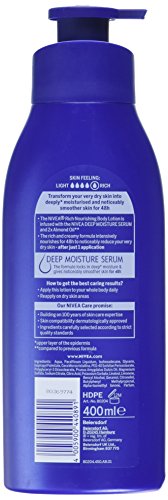 Loción corporal Rich Nourishing de NIVEA (400ml) con efecto durante 48 horas, crema hidratante intensiva con aceite de almendras, fórmula hidratante cremosa