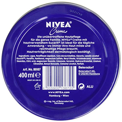 - Contenido del envío – NIVEA Creme, crema multiusos hidratante para un cuidado universal, pack de 4, 4 x 400 ml, lata.