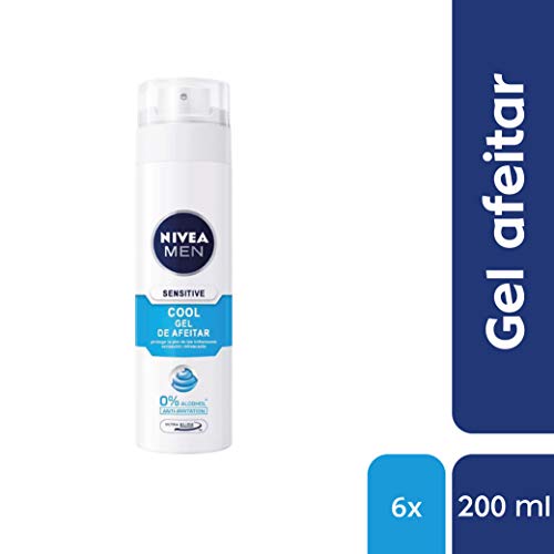 - Contenido del envío: NIVEA MEN Sensitive Cool Gel de Afeitar, gel con 0% alcohol óptimo para pieles sensibles, pack de 6, 6 x 200 ml, bote