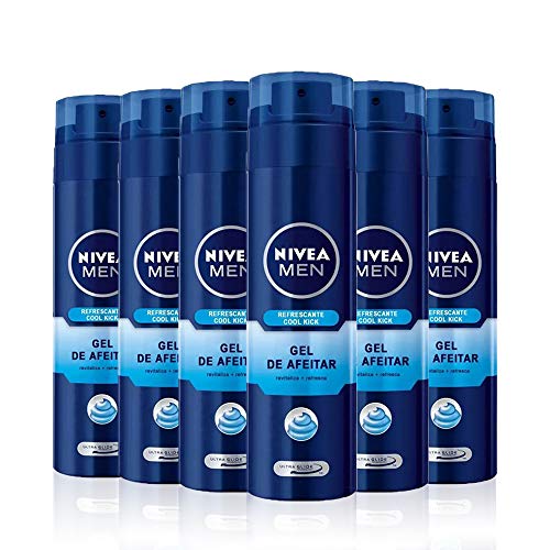 NIVEA MEN Cool Kick Gel de Afeitar Refrescante en pack de 6 (6 x 200 ml), gel facial para un afeitado apurado y cómodo, gel de afeitado con tecnología Ultra Glide