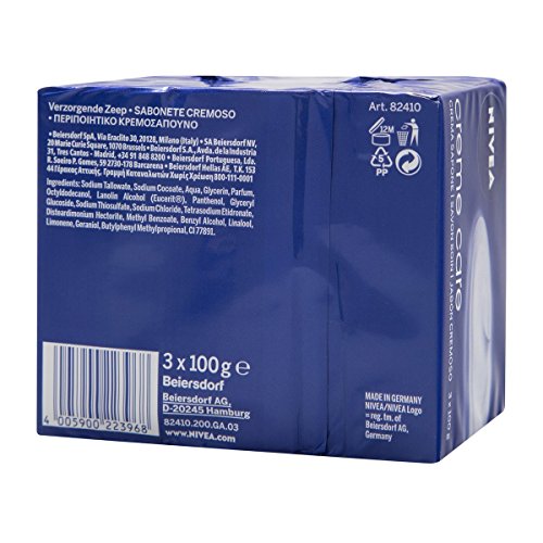 - Contenido del envío: NIVEA Creme Care Jabón en pastilla, jabón de manos con la fragancia y los ingredientes de NIVEA Creme, 3 x 100 g