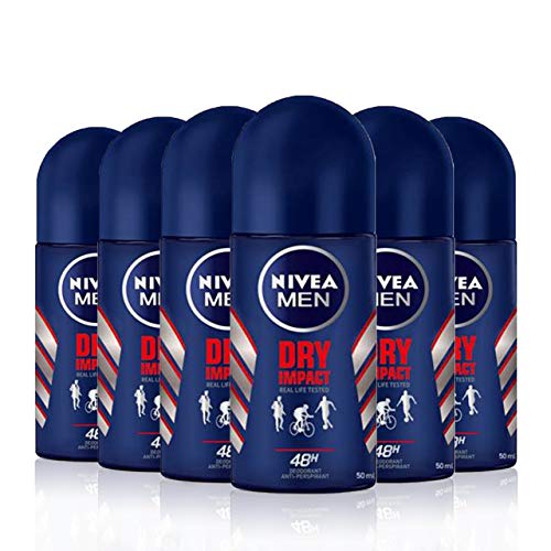 NIVEA MEN Dry Impact Roll-on en pack de 6 (6 x 50 ml), desodorante antitranspirante con protección 48 h, desodorante roll-on de cuidado masculino testado en la vida real
