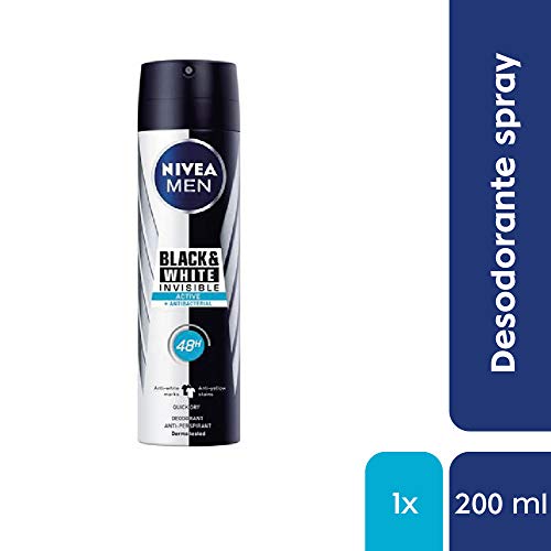 - Contenido del envío – NIVEA MEN Black & White Invisible Active Spray, desodorante masculino para cuidar tu piel y tus prendas de ropa, 1 x 200 ml, spray.