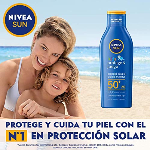 - Contenido del envío: NIVEA SUN Leche Solar Niños Protege & Juega FP50+, con protección UVA/UVB y resistente al agua, 1 x 200 ml, botella