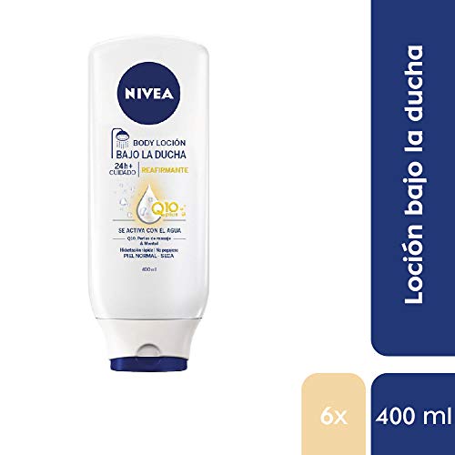 - Contenido del envío – NIVEA Bajo la Ducha Loción Reafirmante Q10Plus, loción corporal para piel seca y normal, pack de 6, 6 x 400 ml, bote.