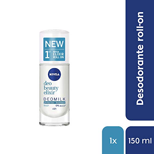NIVEA DeoMilk Fresh Beauty Elixir Desodorante Roll on (1 x 40 ml), con esencia de leche rehidrata y protege, desodorante antitranspirante para una piel suave y fresca