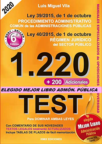 1220 Preguntas Tipo Test. Ley 39/2015 de Procedimiento Administrativo Común y Ley 40/2015 del Régimen Jurídico del Sector Público. 6ª Ed