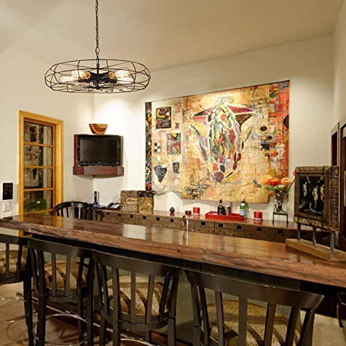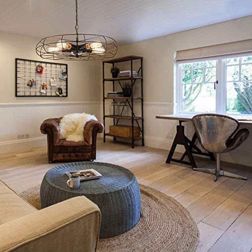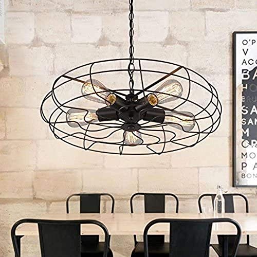 Lámpara LOFT candelabros de hierro industrial novedades golpearon ventilador de techo suspendido cerca (negro con 5 Flamimige) estudio de sala de estar sala de Hängelampe luz pendiente