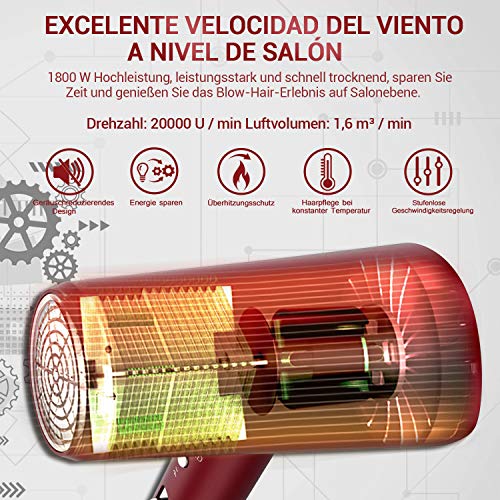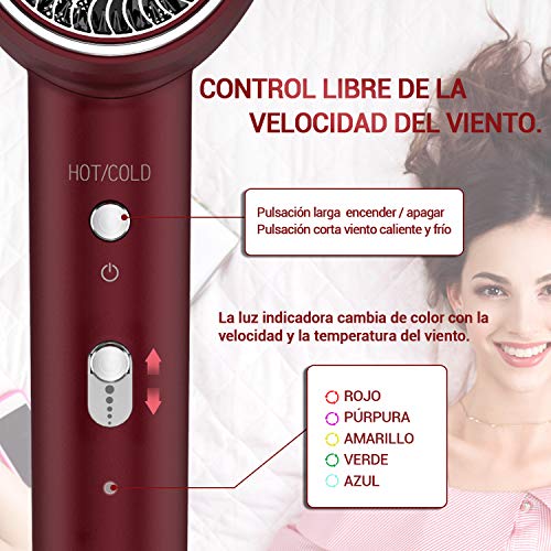 - 【Potente y duradero】Con su potencia de 2400 watios y su motor de corriente continua, de larga duración (motor DC) consigue una dispersión de calor uniforme, produciendo un gran caudal de aire y un secado de cabello muy rápido y cómodo.