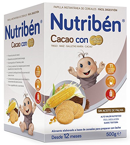- La papilla Nutribén Cacao con galletas María está elaborada para alimentar a tu bebé a partir de los 12 meses, dentro de una dieta variada