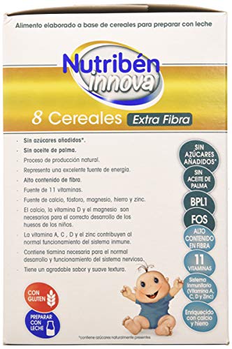 - la papilla nutribén 8 cereales extra fibra de nuestra gama innova presenta un alto porcentaje de cereales: los cereales son una importante fuente de energía