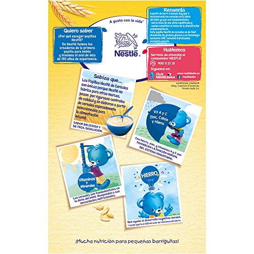 - Papilla de 8 cereales Nestlé con un delicioso sabor a miel que le encantará a tu bebé