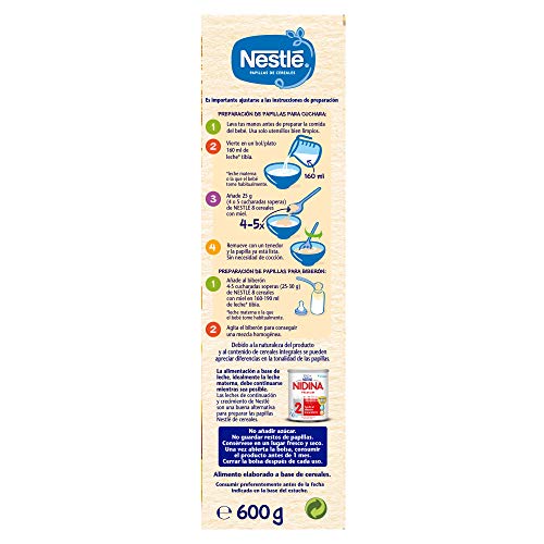 - Papilla de 8 cereales Nestlé con un delicioso sabor a galleta que le encantará a tu bebé