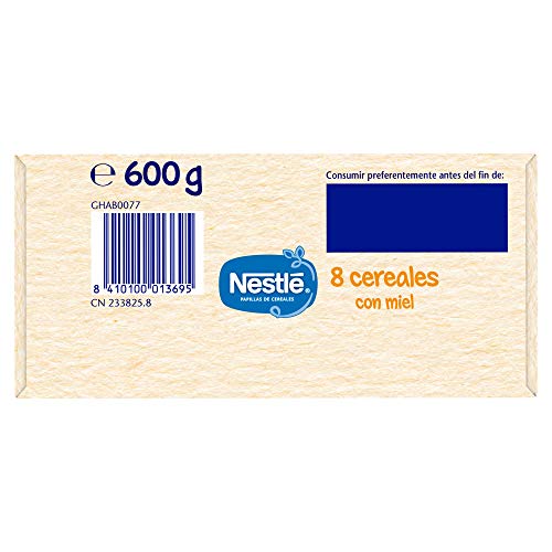 Nestlé Papilla 8 cereales con Miel - Alimento Para bebés - Paquete de 6x600 g - Total: 3.6kg