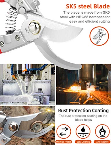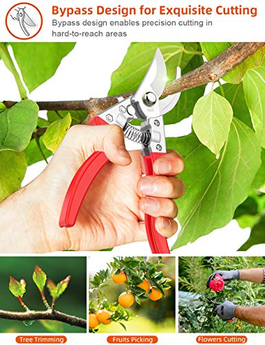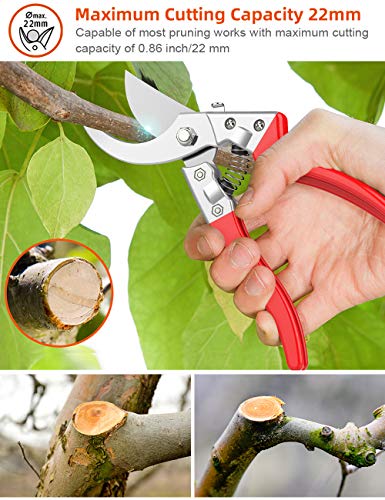- 【Fácil de usar & afilada】La tijera de podar está hecha de acero SK5 con una dureza de HRC58, que es muy afilada para podar fácilmente las ramas,rosales y plantas ornamentales de 2.2cm pero sin sin dañarlas.
