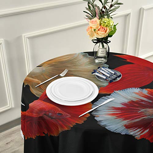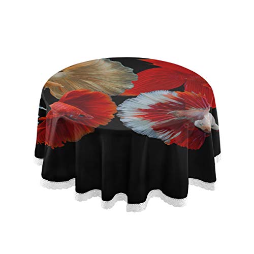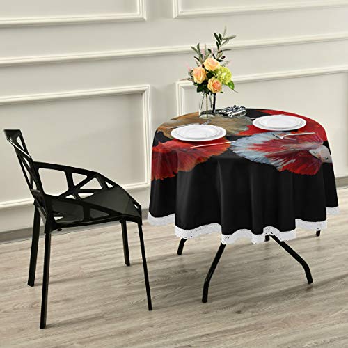 WYYWCY - Mantel Redondo para Sala de Estar, diseño de pez siamés luchando con Cola de rosal, para Mesa de Comedor o Patio de 60 Pulgadas, con Costuras de Encaje de macramé, decoración de poliéster