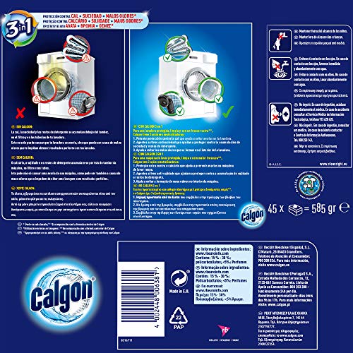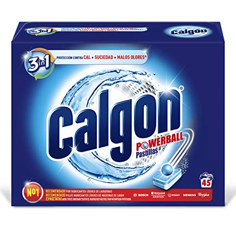 Calgon Powerball Pastillas - Antical para la Lavadora, Elimina Olores y Suciedad, en formato pastillas, 45 unidades