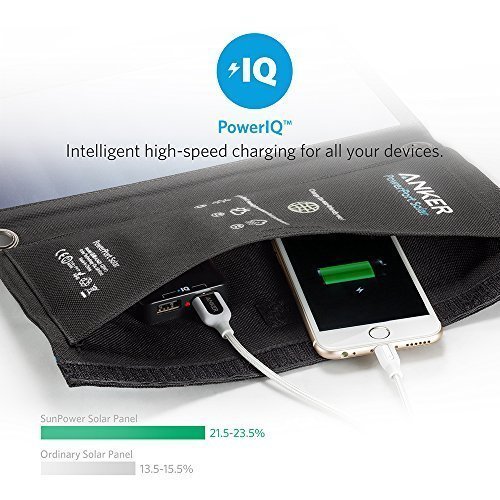 - Fast Charging Technology: PowerIQ delivers the fastest possible charging speed up to 2.4 amps per port or 3 amps overall under direct sunlight. 21 watt SunPower solar array is 21.5-23.5% efficient, providing enough power to charge two devices simultaneously.