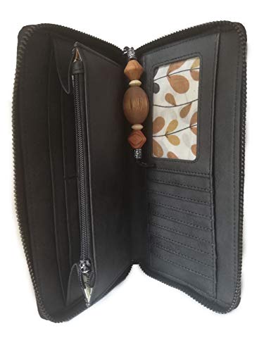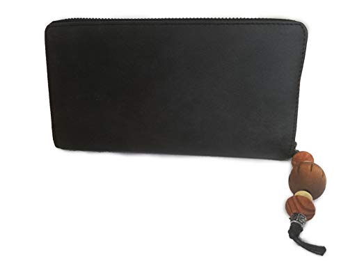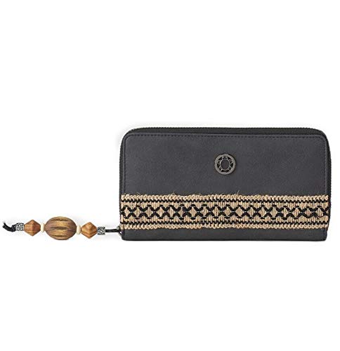 CAMINATTA Billetero De Mujer Negro Monedero Interior Tarjetero Cierre Cremallera Cartera Gran Capacidad Bolso Mano Etnico Original Cuero PU Sintético 10x19x2 (Negro)