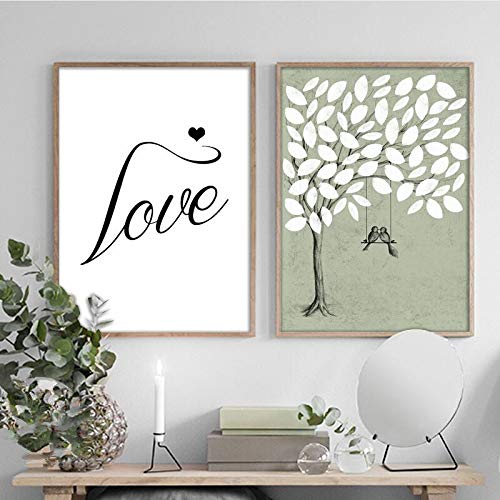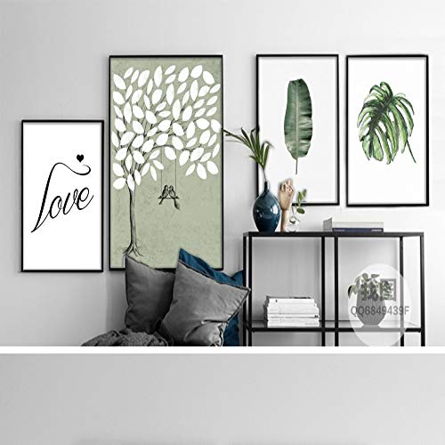Nuevo nórdico amor pájaro hoja verde lienzo decorativo arte impresión cartel hogar pared decoración imagen 21x30 cm