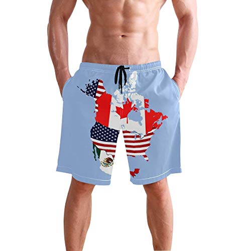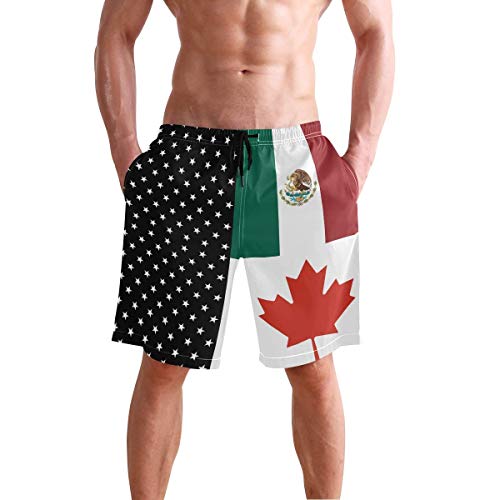 opi 90iuop Estados Unidos Canadá Bandera de México Pantalones Cortos de baño para Hombre de Secado rápido con Bolsillos