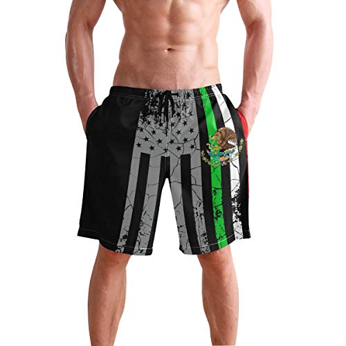opi 90iuop USA Mexico Flag Green Line Bañador para Hombre Shorts de Tabla de Secado rápido con Bolsillos