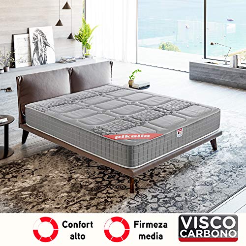 PIKOLIN, Colchón viscoelástico carbono de gama alta, 135x190, máxima calidad y confort, firmeza media, Altura 26 cm. Modelo Troya