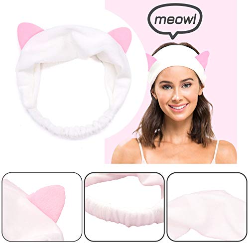 - Diadema Linda: el paquete viene con una linda banda para el cabello con orejas de gato, suave y cómoda de usar, la diadema ajustable es elástica y lo suficientemente ancha, idea para hacer máscaras faciales, limpiar la cara, bañarse, maquillarse o cualquier otra cosa que necesite .