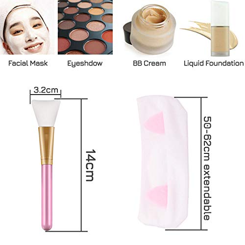 Cepillo Mascarilla Facial Y Diadema,AOBETAK Juego De 4 Cepillos De Mascarillas Faciales De Silicona Sin Pelo, Brochas De Maquillaje Para La Cara, Cosmética, Máscara De Ojos, Suero O Bricolaje