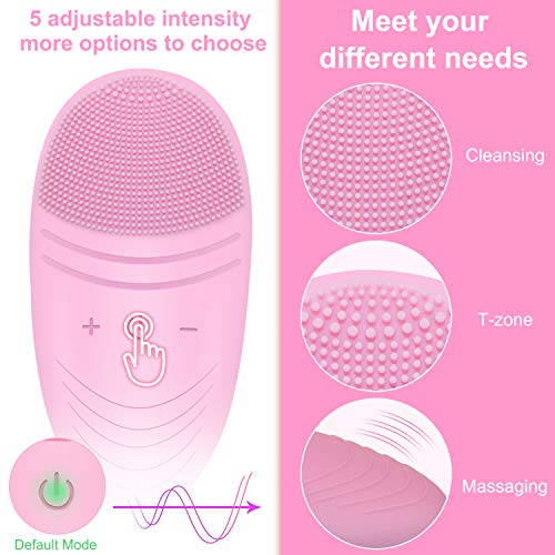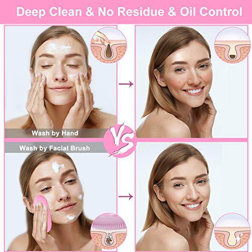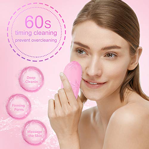 Cepillo de Limpieza Facial de Silicona, fayleer Limpiadora Facial de Silicona Cepillo para limpiar la cara, cepillo y masajeador facial eléctrico resistente al agua para todo tipo de pieles(Rosa)