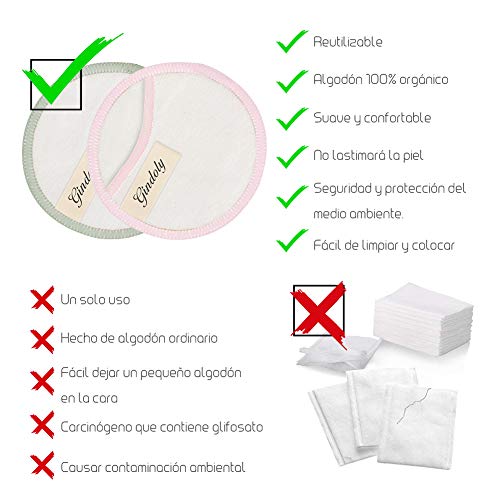 - El almohadillas desmaquillantes reutilizables es adecuado para todo tipo de pieles. Tiene un tacto suave y es un producto natural e inofensivo que no causa irritación en la piel. Se pueden usar discos desmaquillantes para limpiar la cara y los ojos, y es para mujeres, hombres, niños y bebés, o piel sensible