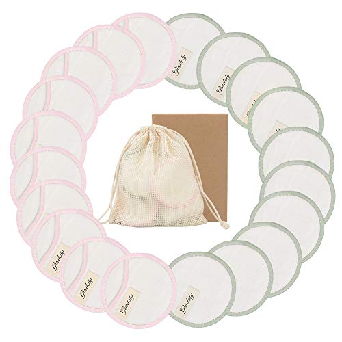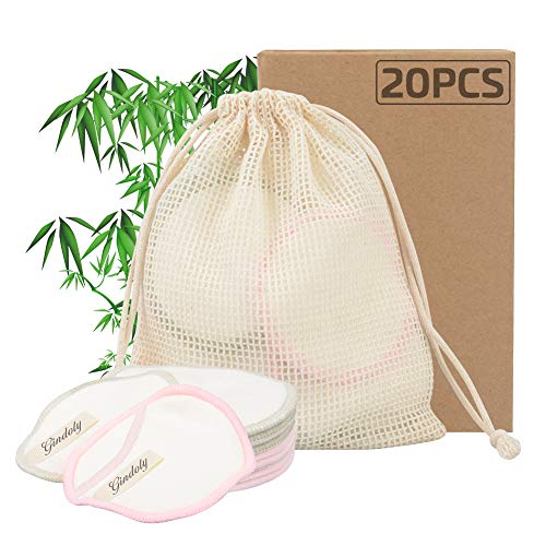 Gindoly 20 Pcs Discos Desmaquillantes Reutilizables del Fibra de Bamb¨² Lavables Almohadillas Maquillaje Desmaquillante Facial para Todo Tipo de Pieles con Bolsa de Lavado