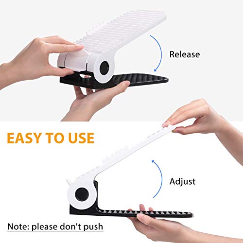 - 【Ajustar diferentes zapatos】Con 4 niveles de altura ajustables, las ranuras del zapato se ajustan a una altura de 7,6 cm a 19 cm, puede ajustar fácilmente la altura de los organizadores de los toboganes según el tamaño de los zapatos. Es adecuado para calzado deportivo, zapatos de tacón alto, zapatos de cuero para hombre, zapatillas y sandalias. en tamaño de 26cm (largo) * 10 cm (ancho) * 7.6 cm mínimo -19 cm máximo (alto).